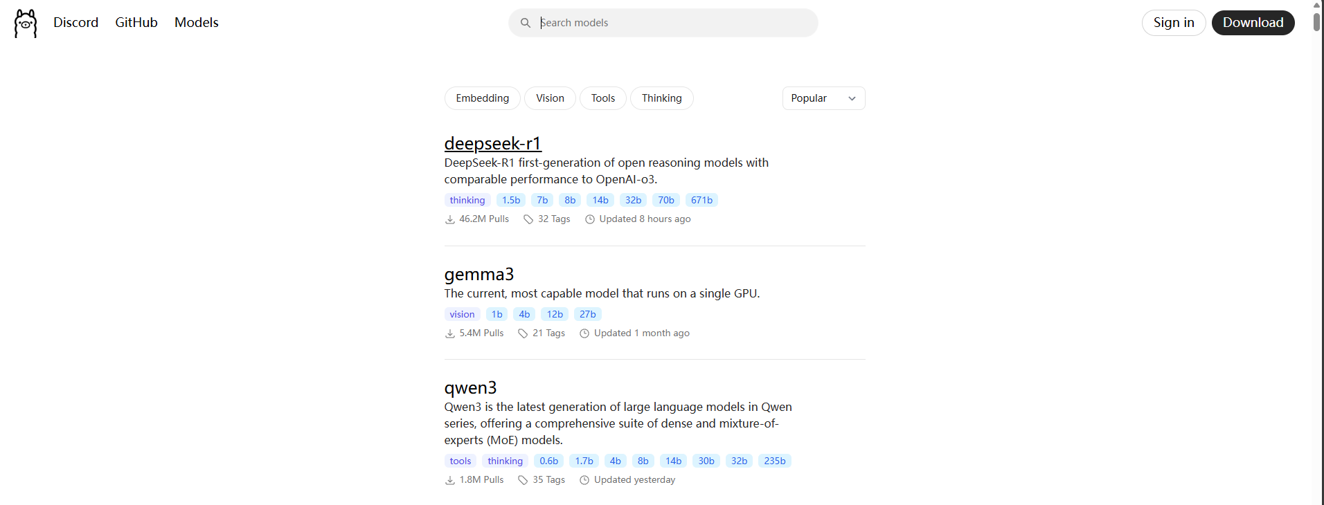 AI大模型最近火出圈了,DeepSeek、Chatgpt等,面对DeepSeek经常出现“服务器繁忙”的现象,你是否想拥有属于自己的“AI助理”?本篇将使用GitHub开源项目Ollama开源的本地大语言模型运行框架)在本地部署DeepSeekR1、qwen3(通义千问)大模型,以供参考。