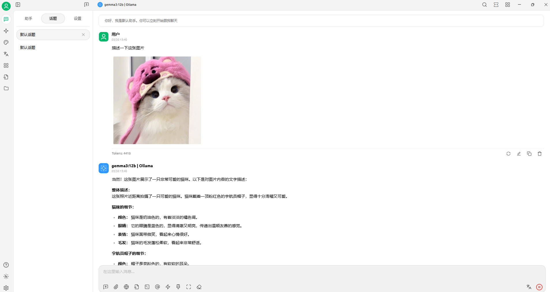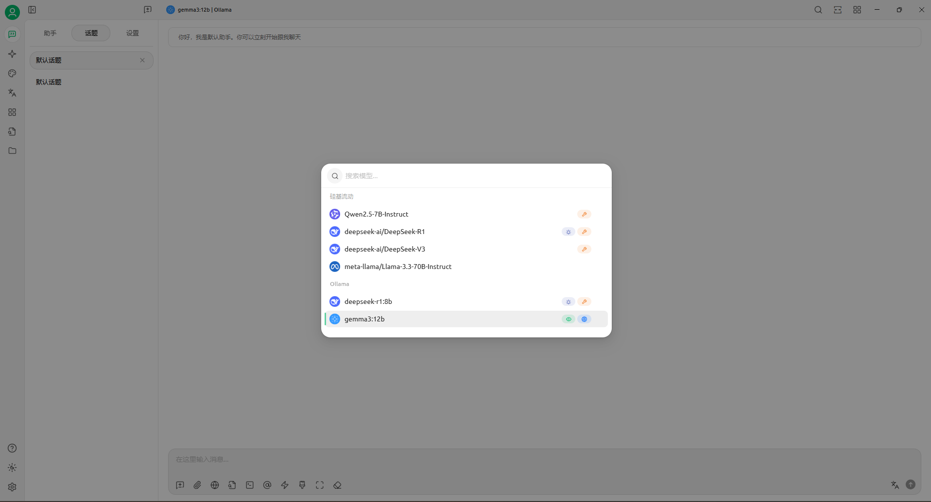 即可开始调用GemmaAI模型了!(注意Cherry studio只是一个图形界面,我们在使用的时候还是需要开启Ollama的)
