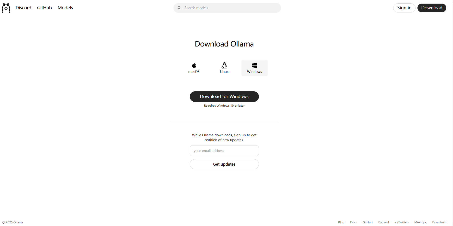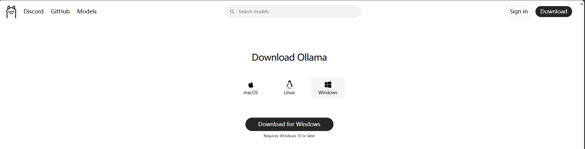 如上图进入Ollama官网后,点击Download➡Download for Windows