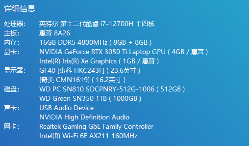 GPU:NVIDIA GeForce RTX3050 Ti laptop