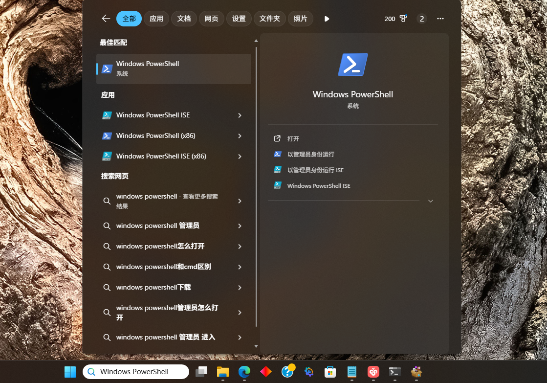 接下来,我们按下 ”Windows徽标键+S“ 快捷打开搜索栏,如下图所示,搜索Windows PoweShell 然后输入ollama -v验证是否安装成功