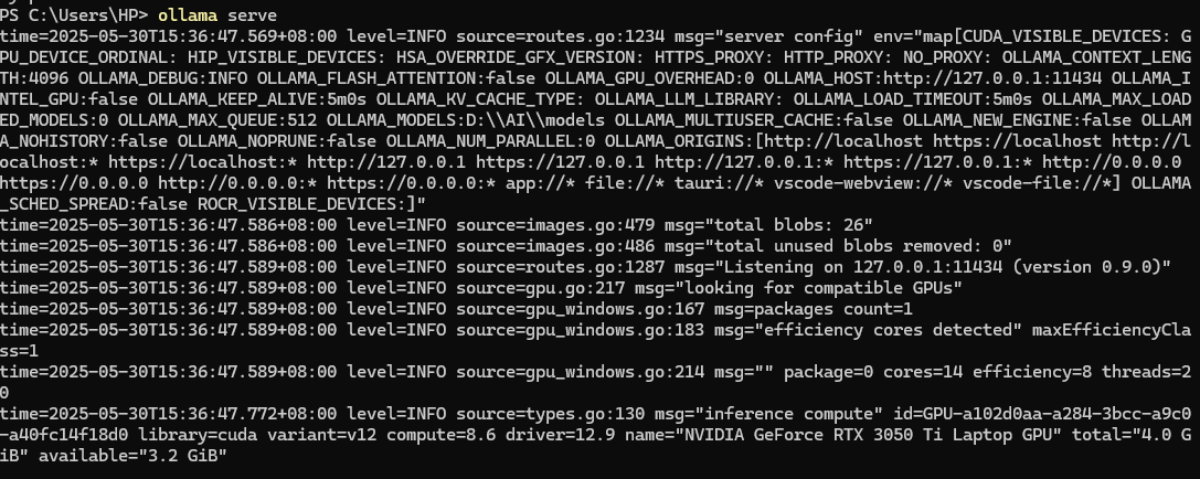 在使用该图形界面的时候,我们依然需要开启Ollama,在Powershell界面输入如下命令开启Ollama服务。