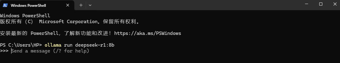 接下来如前述步骤打开PowerShell,输入命令即可下载大模型,等待下载好会自动运行