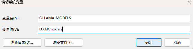 变量名: OLLAMA_MODELS        变量名是固定的,不能动