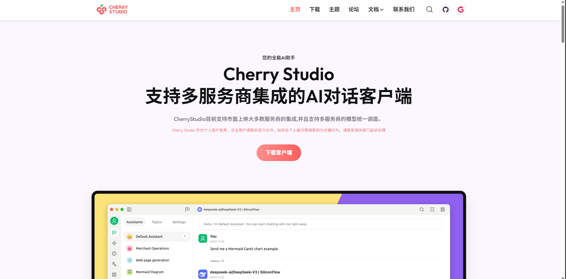 这里我们将通过一个免费的开源产品Cherry Studio,方便快捷的调用DeepSeek。